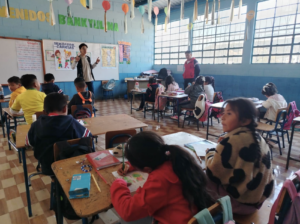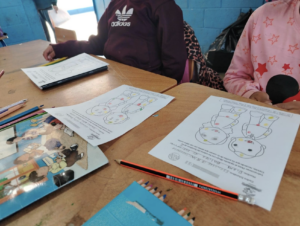 Personal del proyecto Fortalecimiento de los Sistemas de Protección y Garantía de Derechos de la Niñez y Adolescencia Migrante en Guatemala y Honduras, de PAMI, participó en la facilitación del taller con las y los niños de preprimaria sección B y segundo grado de primaria.