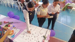 Además, de manera creativa, realizaron actividades que les permitió interacción y mutuo aprendizaje con el público asistente, en su mayoría lideresas en diferentes espacios.