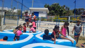 La actividad permitió que 64 NNA interactuaran a través de dinámicas lúdicas y el uso de piscinas inflables, marcando un logro al ser la primera vez que se realiza una intervención de esta naturaleza en la comunidad. En esta actividad se fomentó la participación de manera igualitaria, eliminando barreras de discriminación y fortaleciendo la confianza colectiva. Se observó cómo NNA se apropiaron del polideportivo, transformándolo en un espacio de recreación pacífica y libre de violencia.